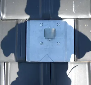 この支持瓦の中央部は穴が空いていて、専用の金具を使って架台を固定するのですが、モジュールや架台の荷重が、野地板に直接かかる構造となっており、屋根瓦に荷重がかかりません。